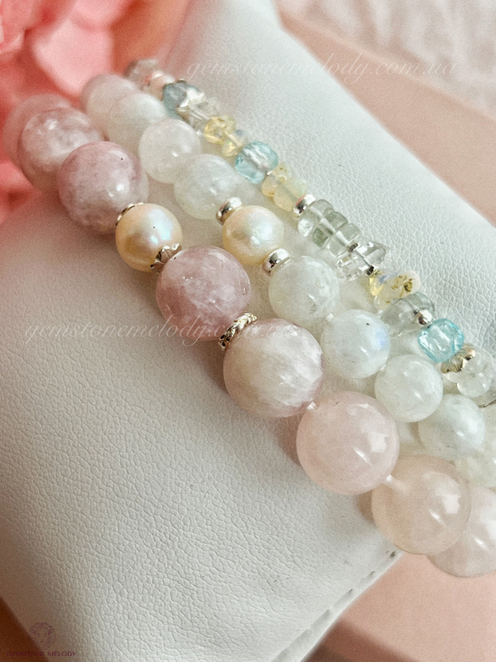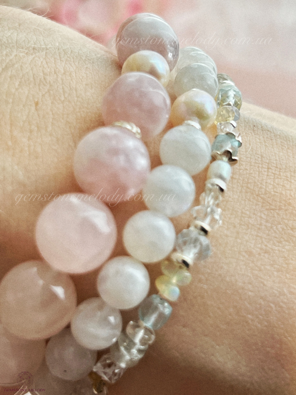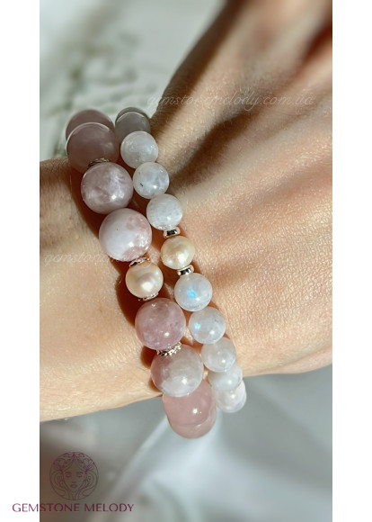 Два браслета ніжних кольорів натуральних каменів