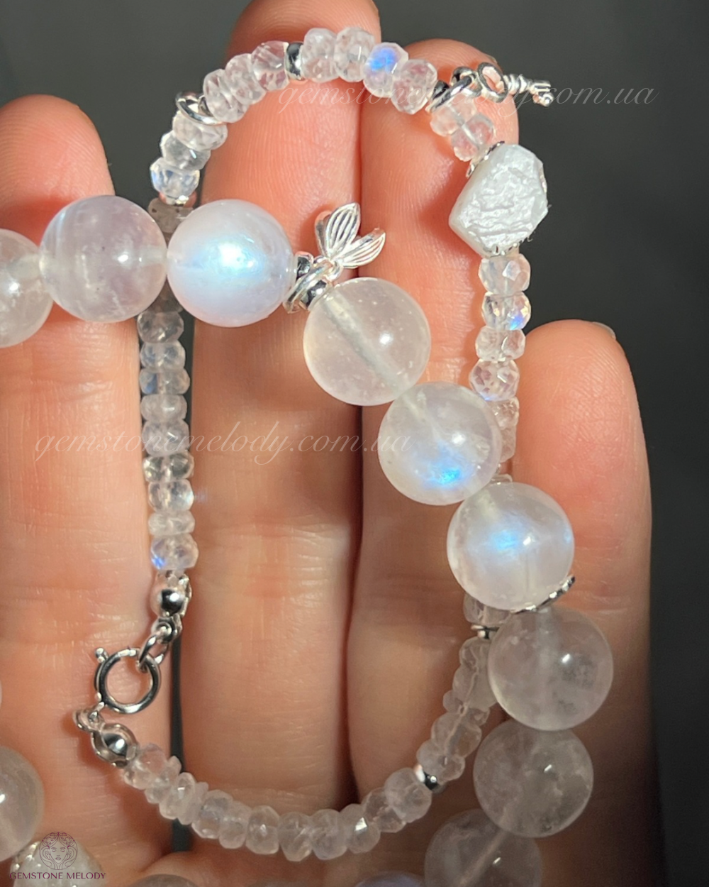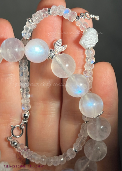 •місячний камінь високої якості 10.5мм, тому є сяйво-ірізація✨;