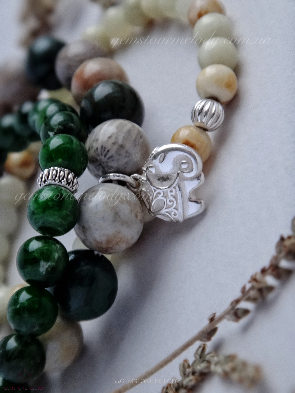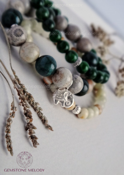 скам’янілий корал 10мм, яшма 10,5мм, срібло 925 проби;
