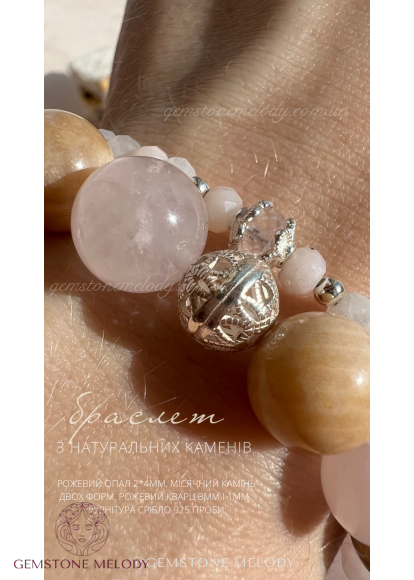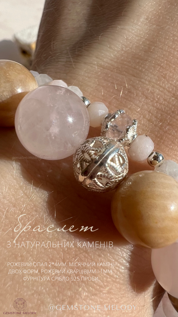 рожевий опал, рожевий кварц, місячний камінь, срібло 925 проби;