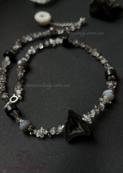 •вставки агату граненого 4*6мм та чорного сонячного каміння;