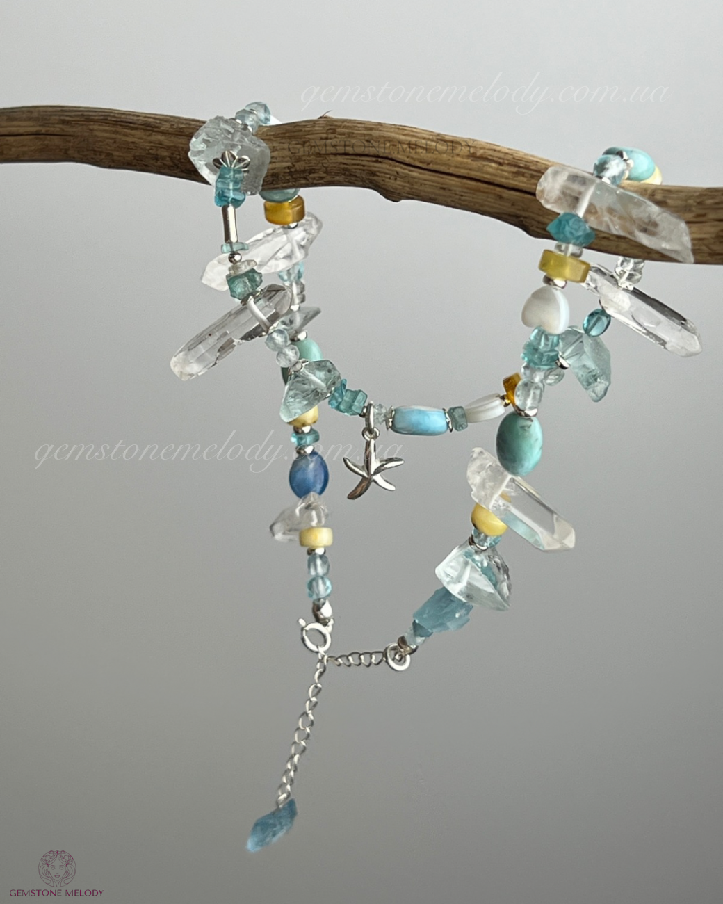 | Камені, які використовуються | Гірський кришталь, топаз, апатит, аквамарин, ларимар, бурштин , перламутр |