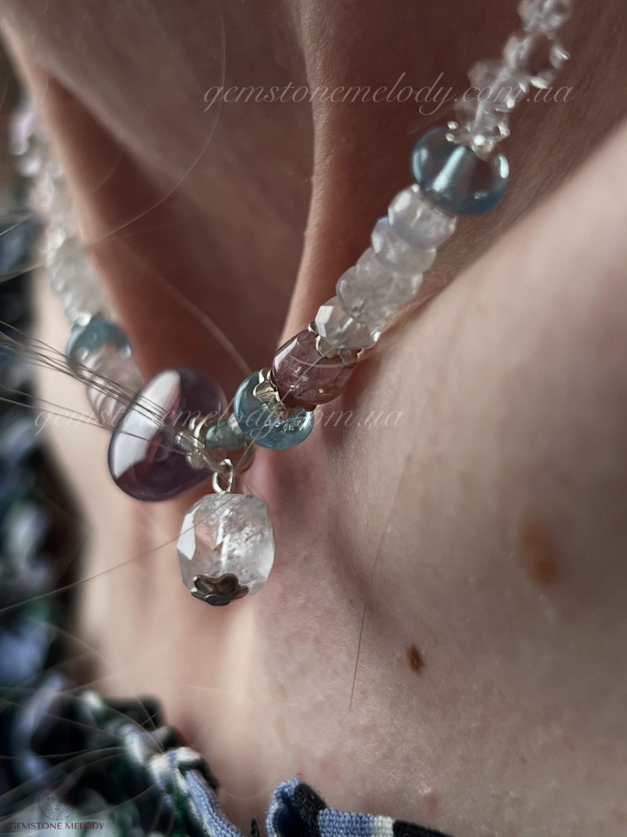•вставки аметистового серця, круглих аметистів 7мм, кунцита, шпінелі, лавандового кварцу, рубіна, турмаліна, топазу, і аквамарину рідкісного;