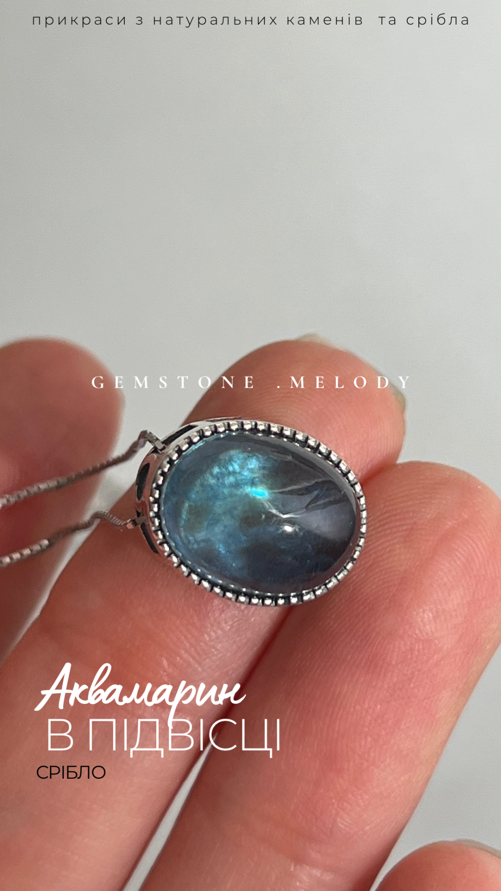 Срібна підвіска з аквамарином