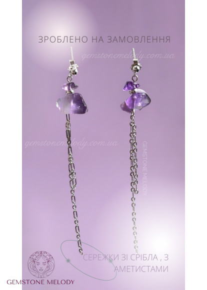 Сережки зі срібла, аметист необробленої форми. Зроблено на замовлення
