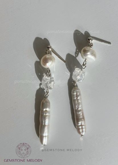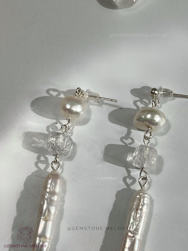 Срібні сережки з перлами бароко