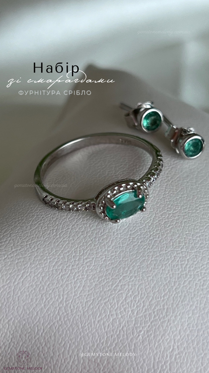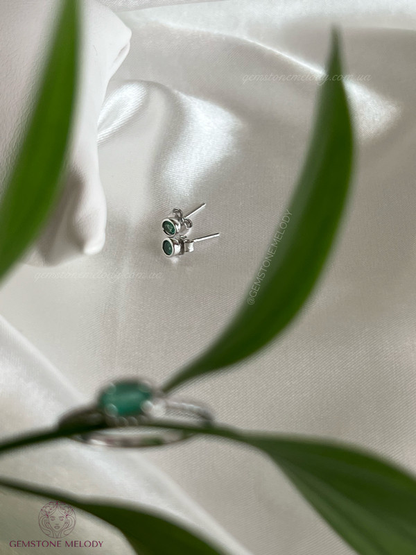 В сережках: смарагд натуральний 3мм, срібло 925 проби;