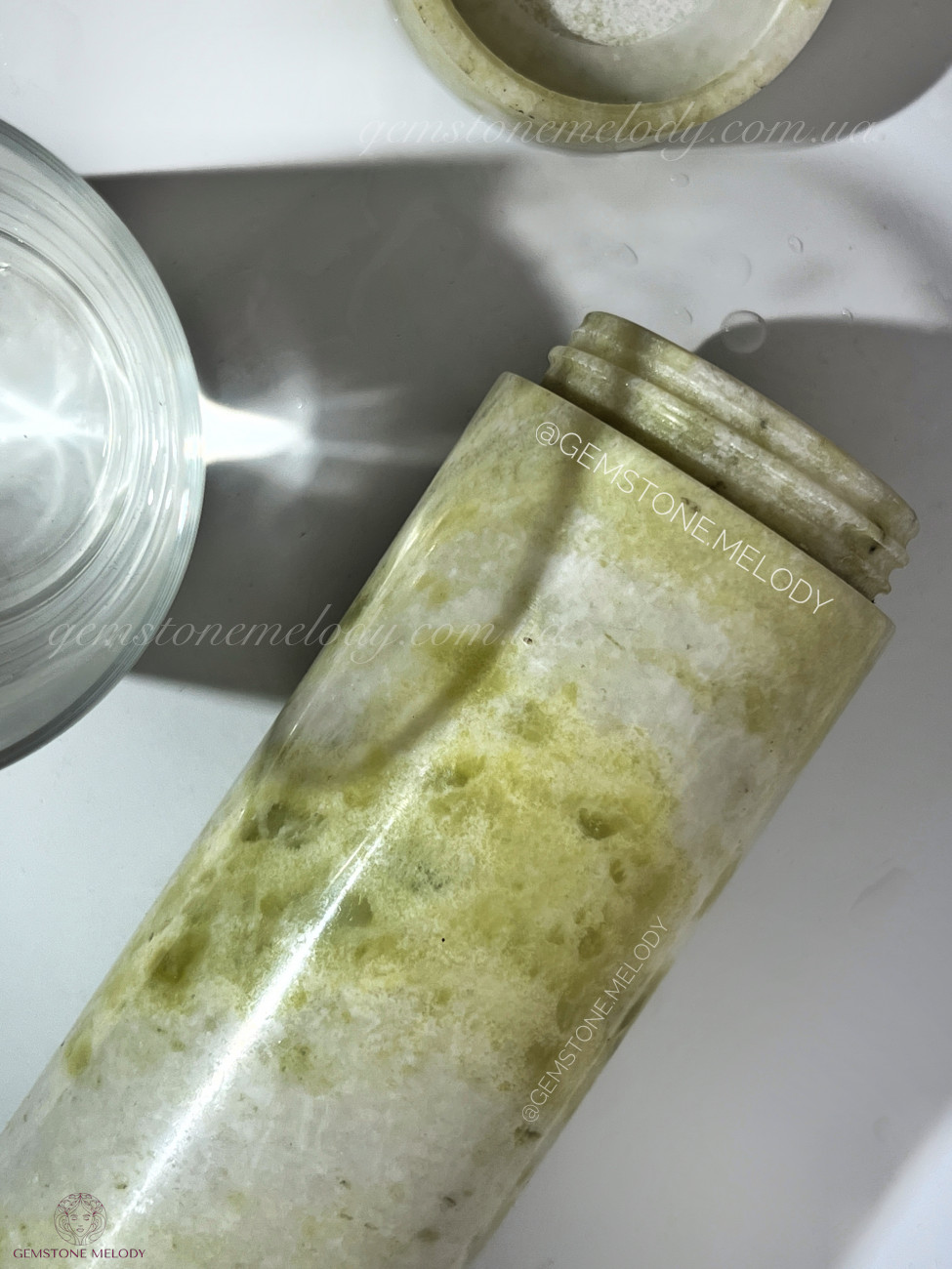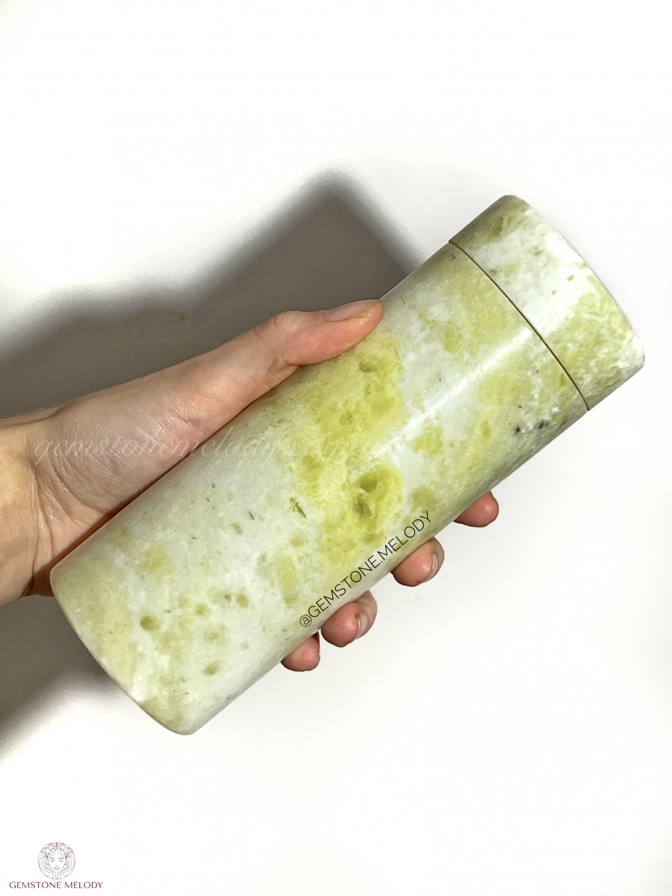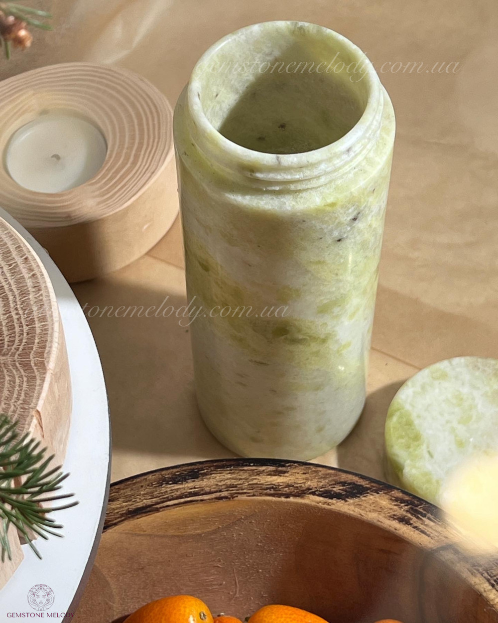 Висота 17см, діаметр 6см. Вважається, що якщо нефрит нагріти, то він стає справді цілющим. Що власне і відбувається, коли в ньому заварювати чай. Китайці вірять, що заварюючи чай в нефритовому чайнику, змінюється не тільки атмосфера самого чаювання, але і смак самого чаю.